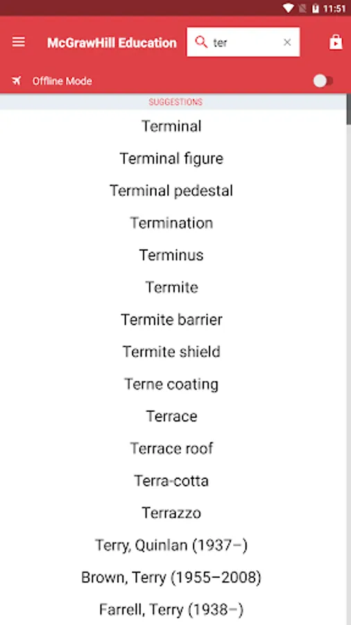 • Search autocomplete helps find words quickly by displaying predictions as you type