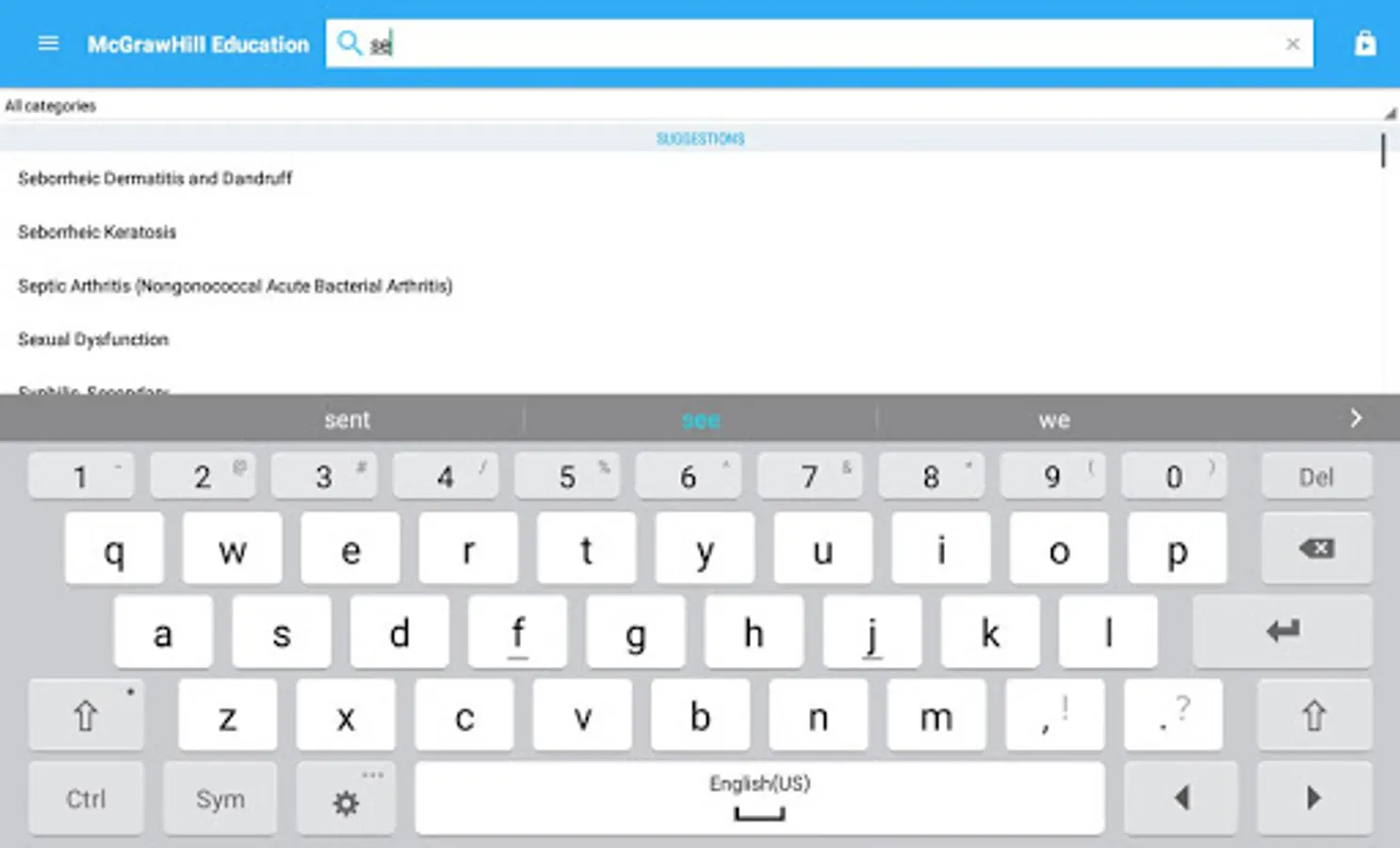 • Search autocomplete helps find words quickly by displaying predictions as you type