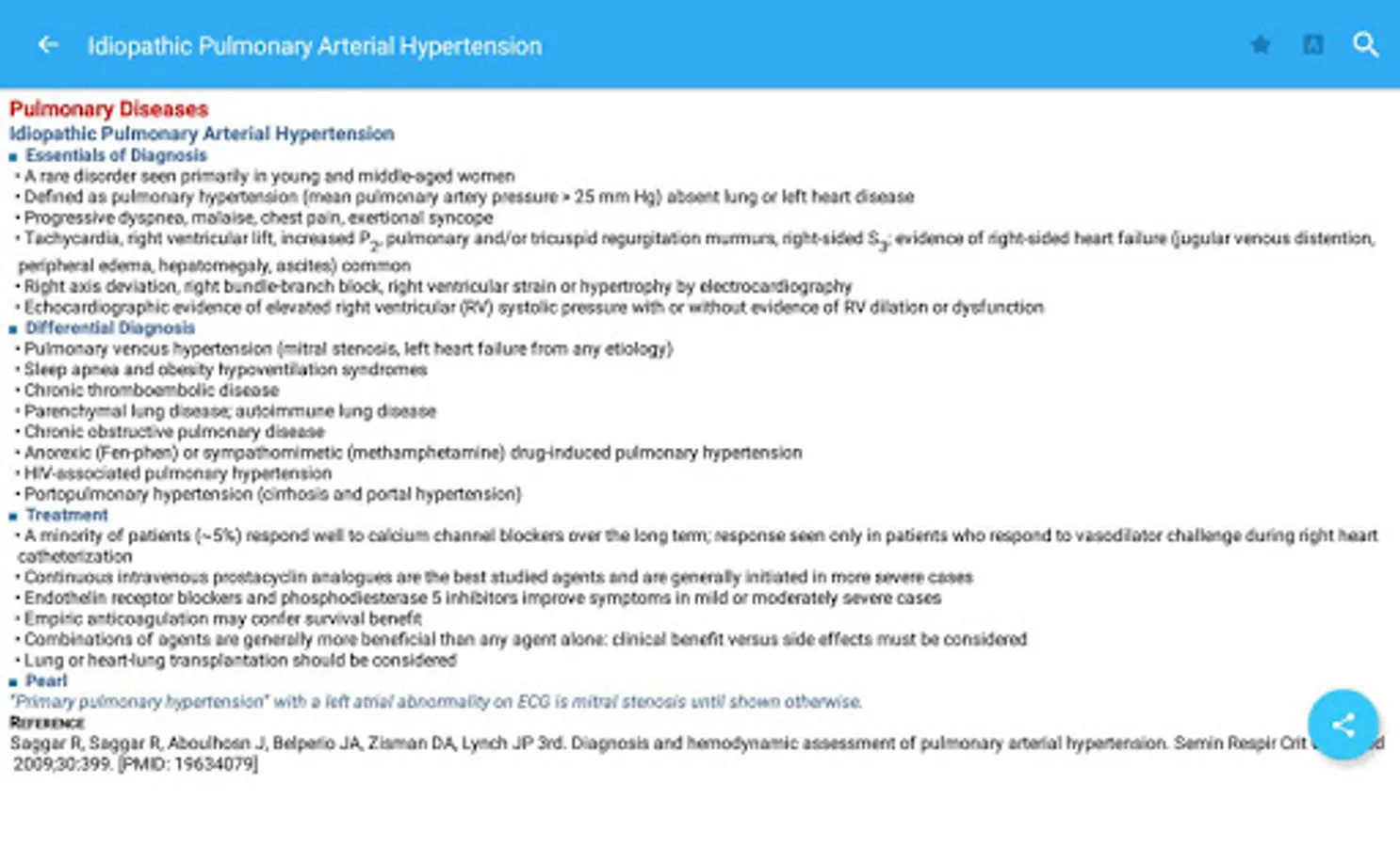 • Bulleted data for each disease covering Essentials of Diagnosis, Differential Diagnosis, Treatment, Pearl, and Reference