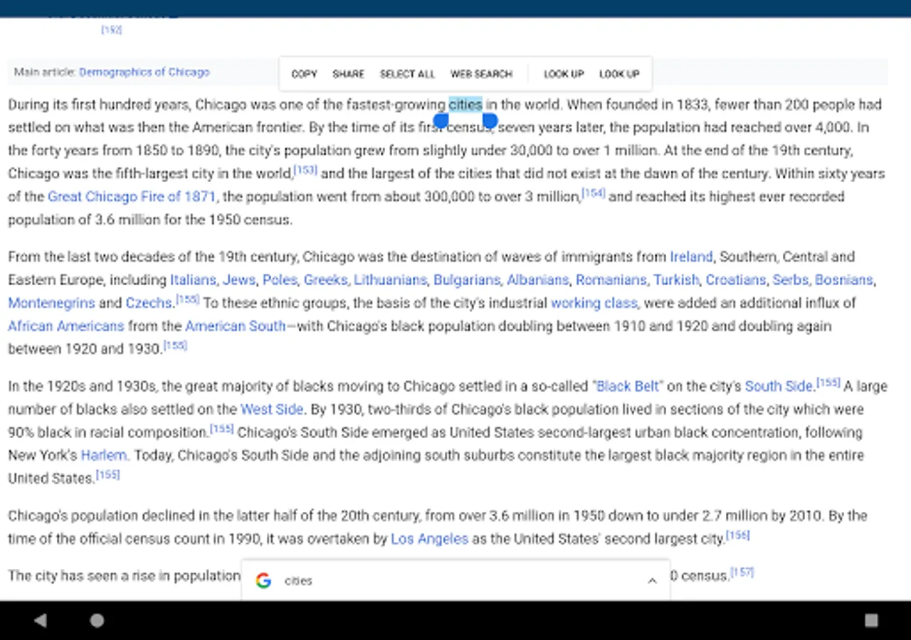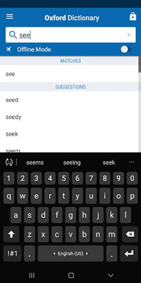 • Search autocomplete helps find words quickly by displaying predictions as you type