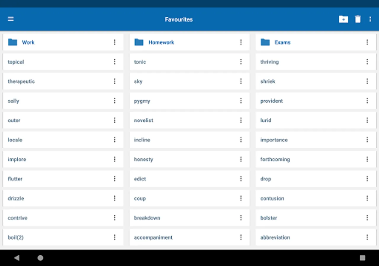 • ‘Favorites’ feature to create custom folders with lists of words from the extensive library