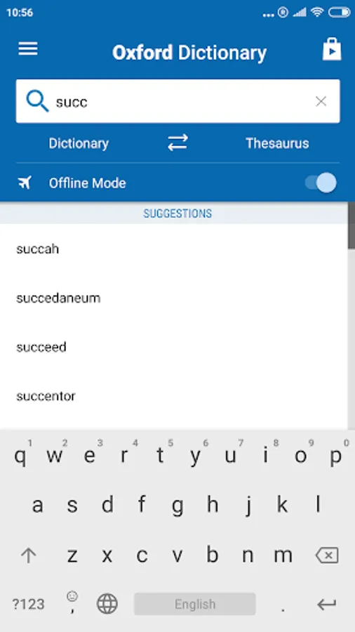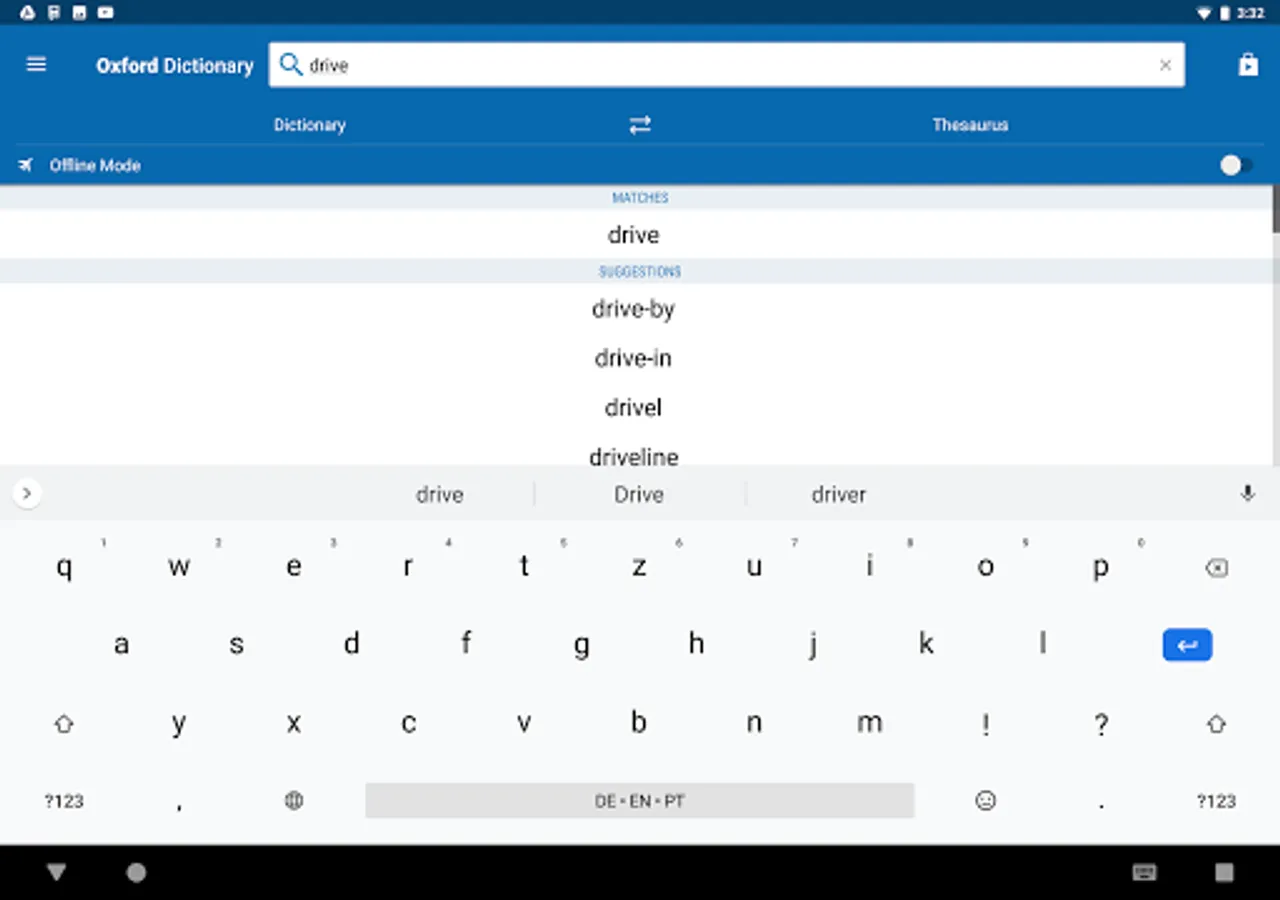 • Search autocomplete helps find words quickly by displaying predictions as you type