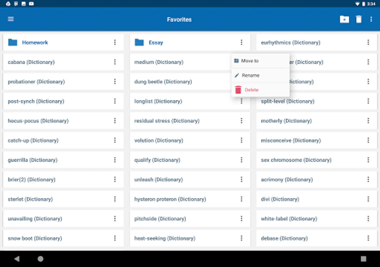• ‘Favorites’ feature to create custom folders with lists of words from the extensive library