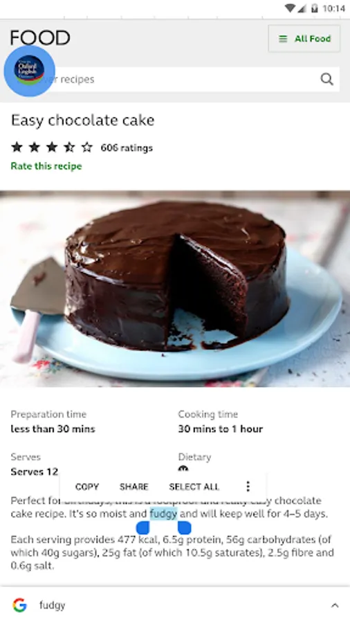 • Search autocomplete helps find words quickly by displaying predictions as you type