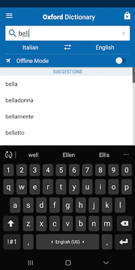 • Search autocomplete helps find words quickly by displaying predictions as you type