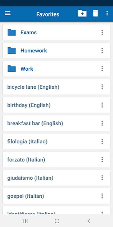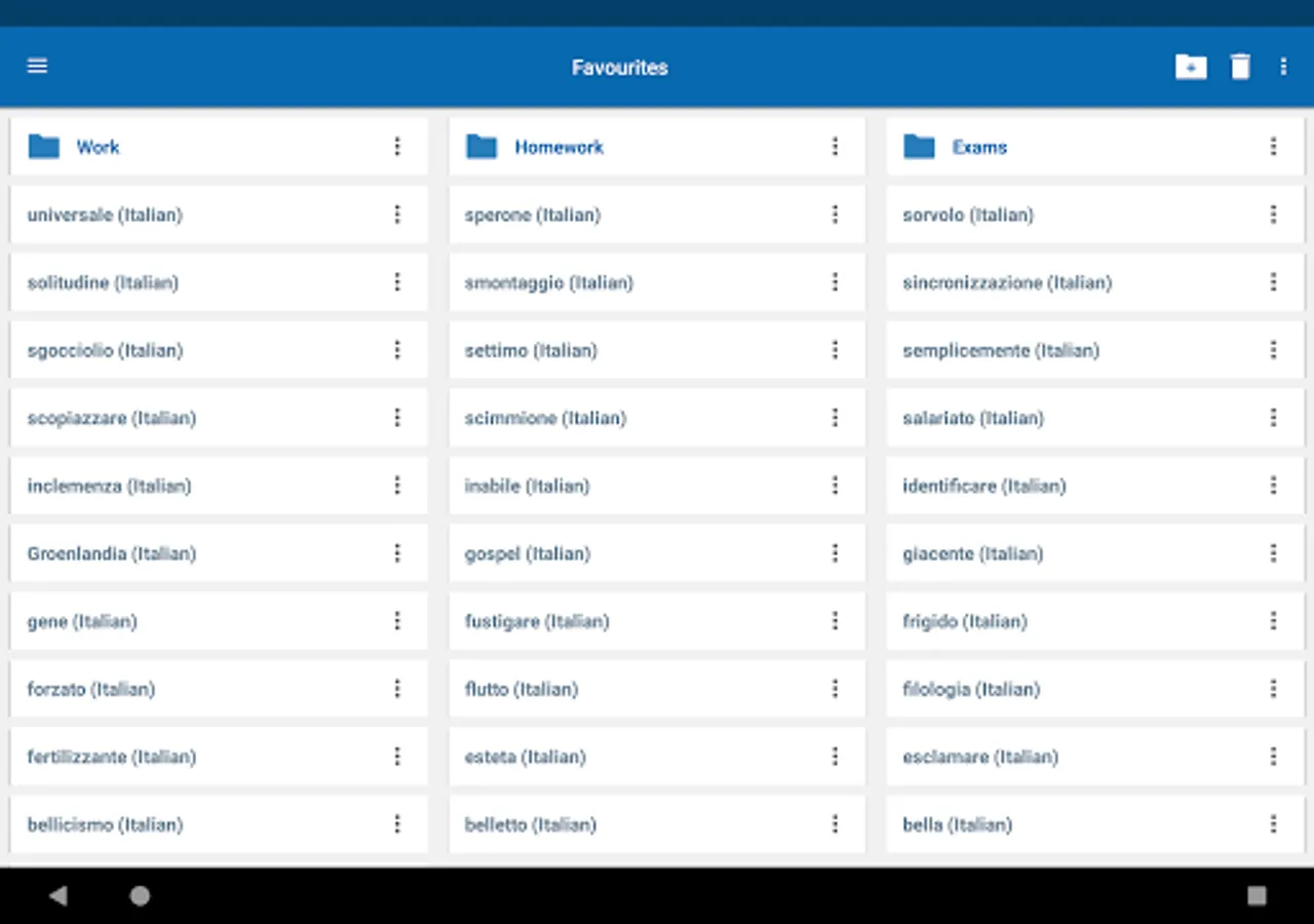 • ‘Favorites’ feature to create custom folders with lists of words from the extensive library