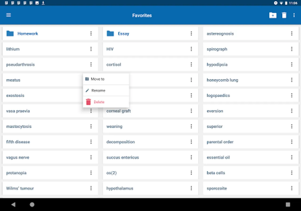 • Designed to give you the freedom to structure your studies the way you see fit the 'Favorites' option allows you to create custom folders with lists of words from the vast library of entries.