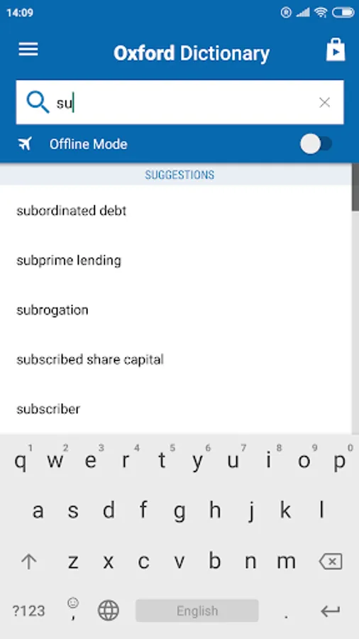 • Search autocomplete helps find words quickly by displaying predictions as you type