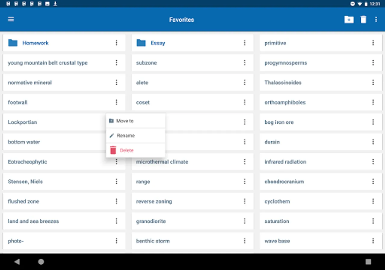 • ‘Favorites’ feature to create custom folders with lists of words from the extensive library
