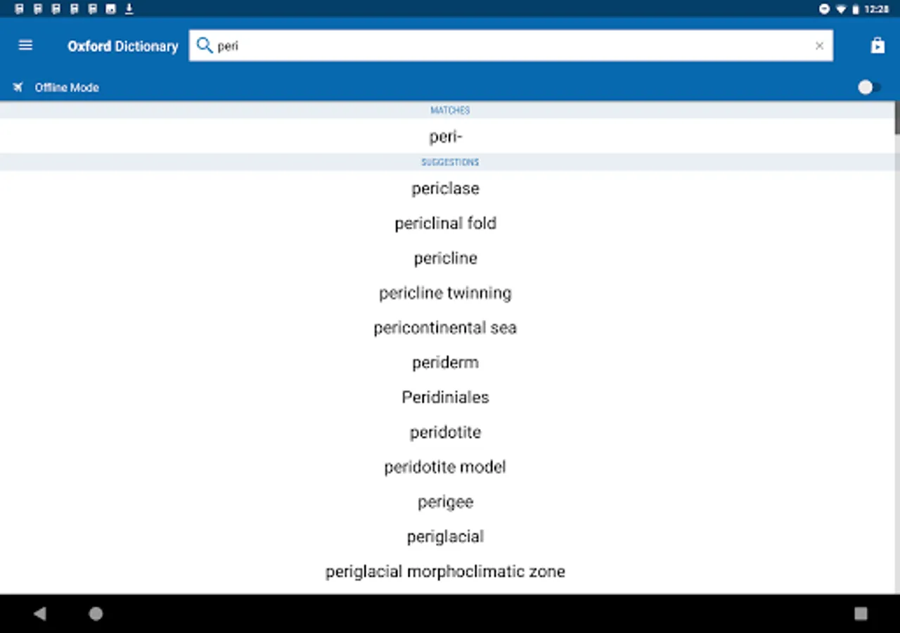 • Search autocomplete helps find words quickly by displaying predictions as you type