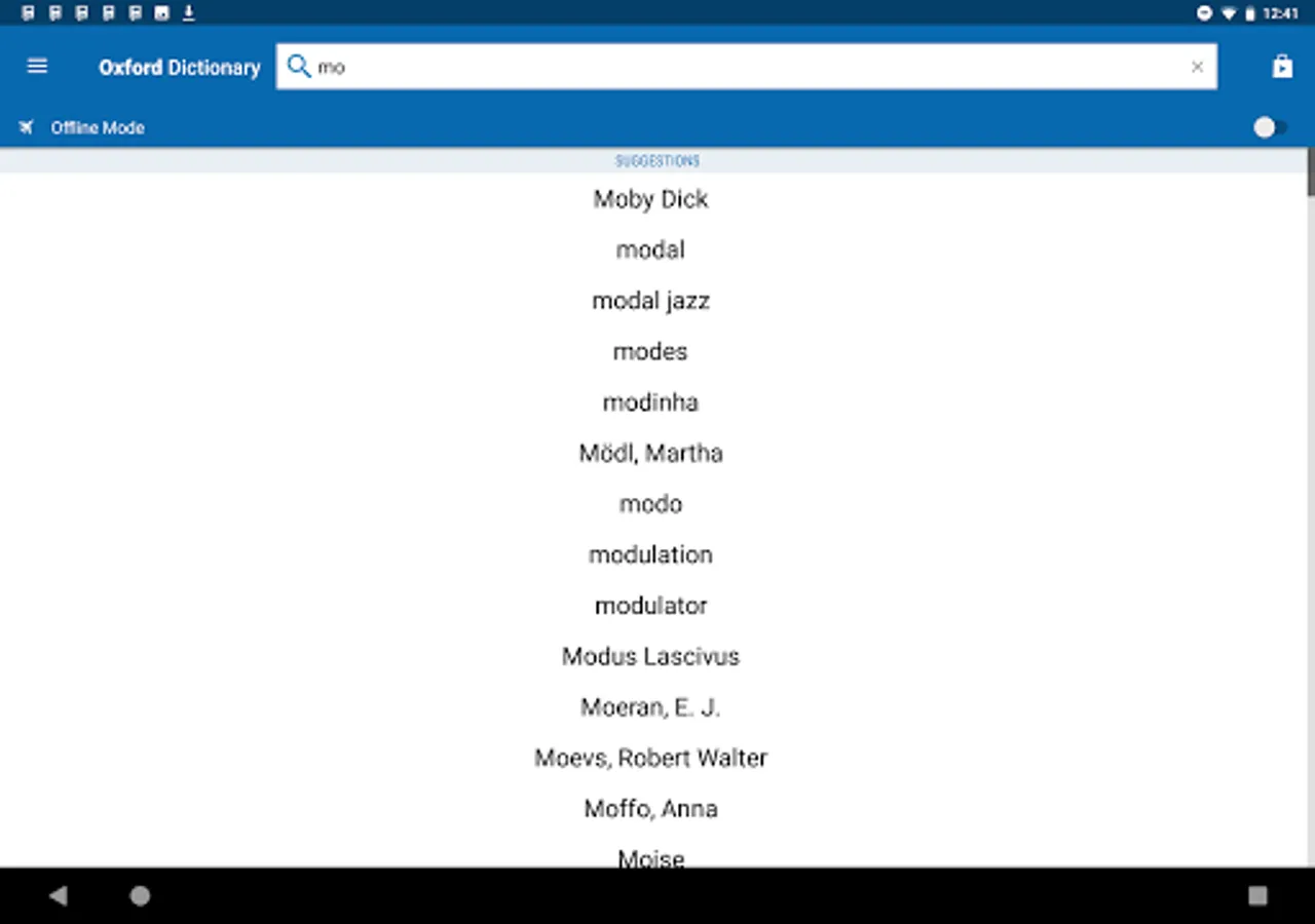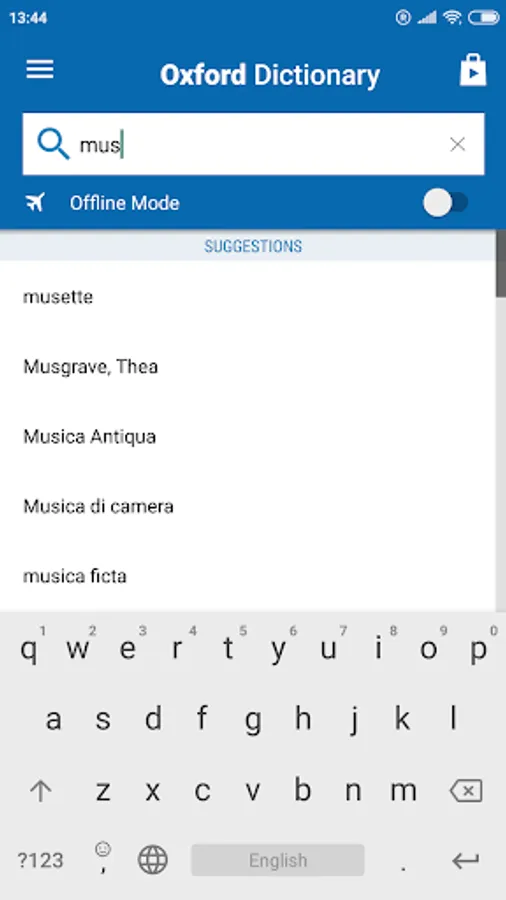 • Search autocomplete helps find words quickly by displaying predictions as you type