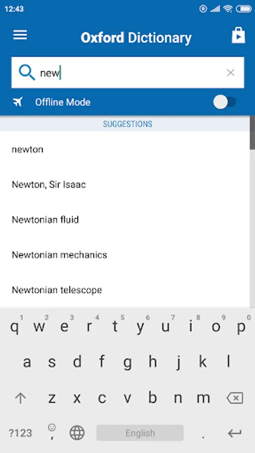 • Search autocomplete helps find words quickly by displaying predictions as you type