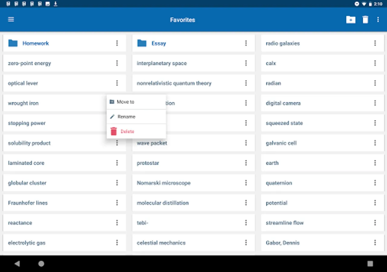 • ‘Favorites’ feature to create custom folders with lists of words from the extensive library