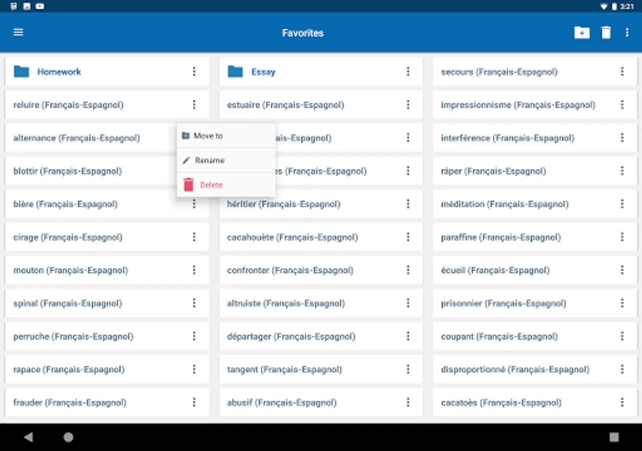 • ‘Favorites’ feature to create custom folders with lists of words from the extensive library