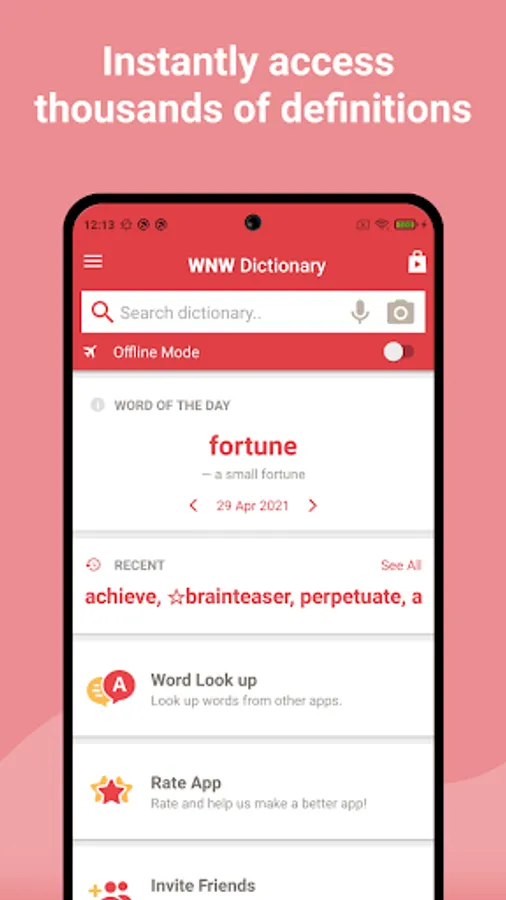 • Offline mode - look up words without an internet connection