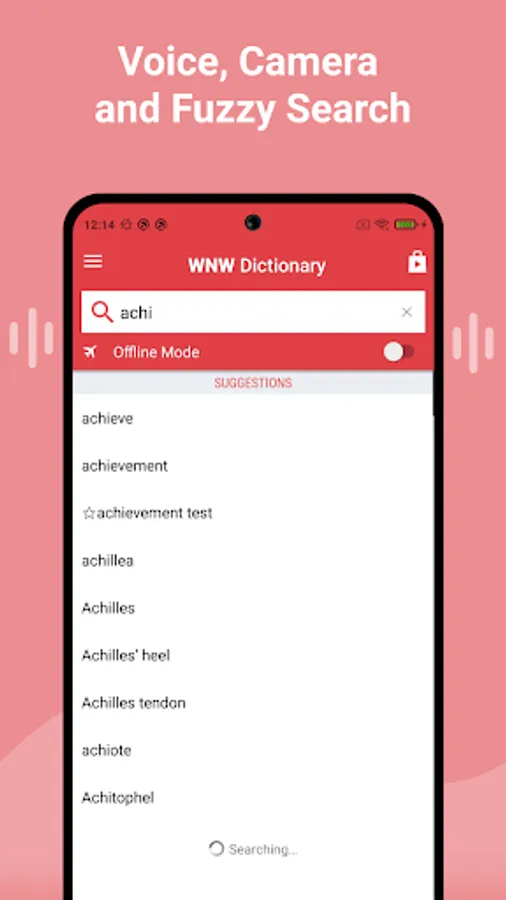 • Search autocomplete helps find words quickly by displaying predictions as you type