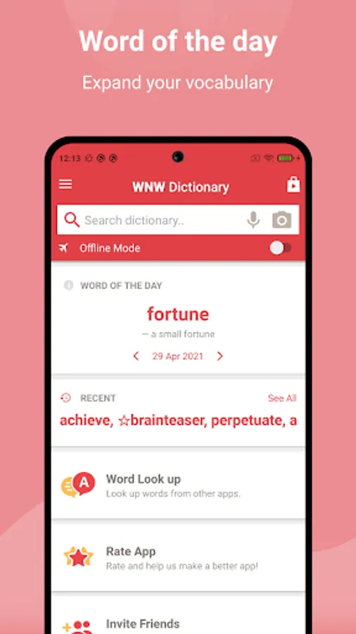 • Learn a new word every day with our ‘Word of the day’ option