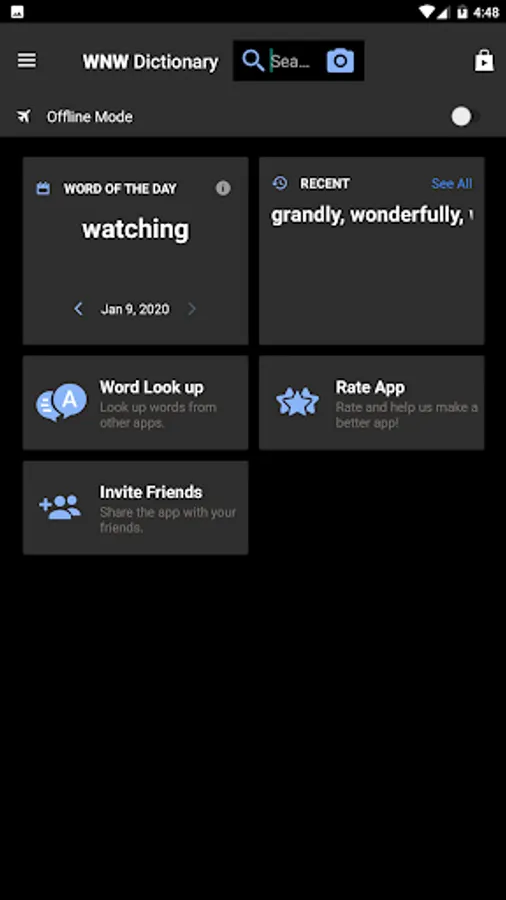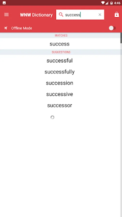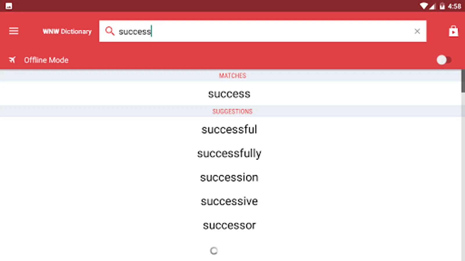 • Search autocomplete helps find words quickly by displaying predictions as you type
