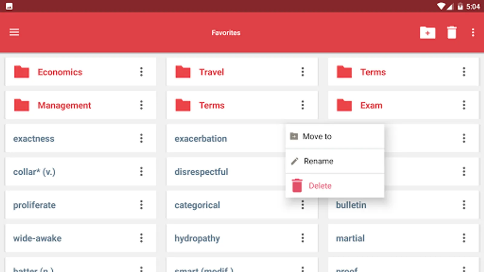 • Designed to give you the freedom to structure your studies the way you see fit the 'Favorites' option allows you to create custom folders with lists of words from the vast library of entries