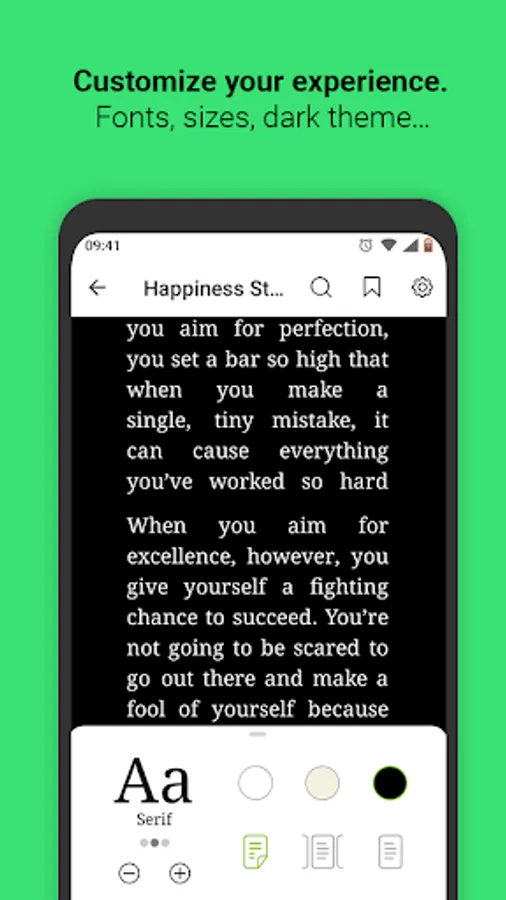 Take notes and highlights, mark inspirational quotes and never lose track of your reading progress with our bookmarks.