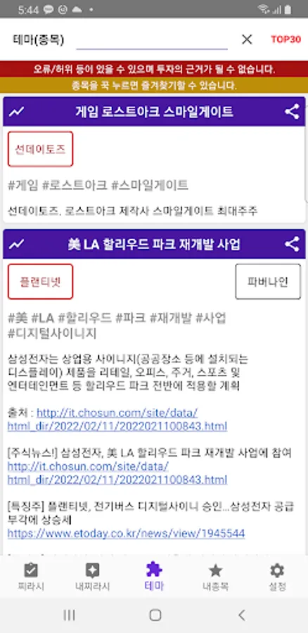 3. Ability to search stock themes and register related stocks