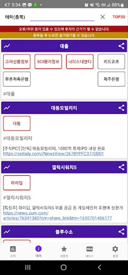 You can search stock themes and search TOP30 stocks in real time during the intraday.