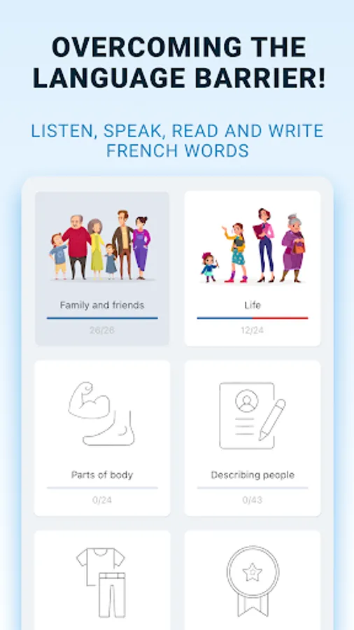 Do you need a certain topic for studying? You can choose among the most important topics and get our French pronunciation app free