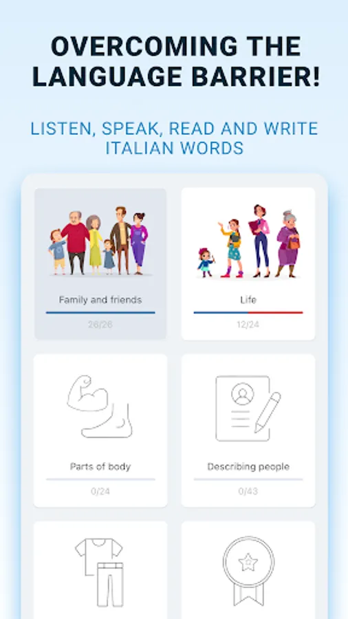 Application was developed for those, who want to get basic knowledge of conversational Italian quickly and free of charge!