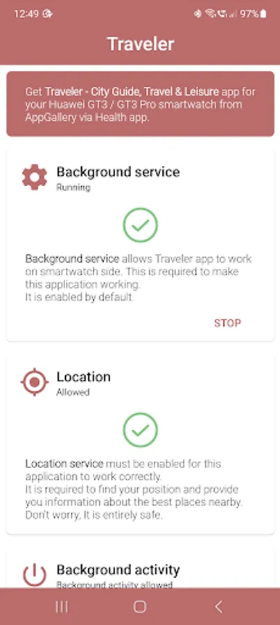 This is phone host app which is required by 'Traveler - City guide, Travel & Leisure' app that runs on Huawei GT4, GT3, GT3 Pro and Fit 2 smartwatches (all variants)