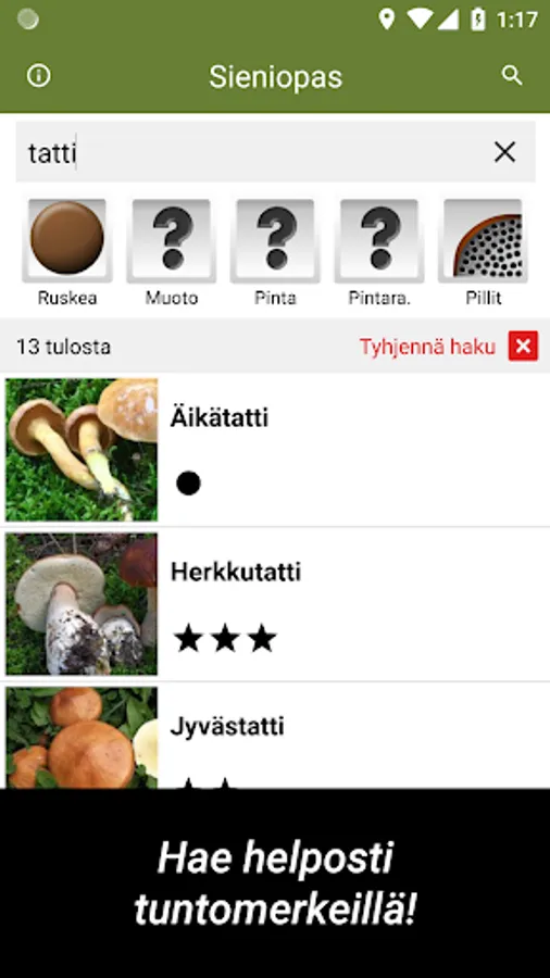Like any publication, this program may contain errors, for example due to a technical error. Eating some species of mushrooms can be life-threatening, so always remember to check the edibility of mushrooms from other sources as well.