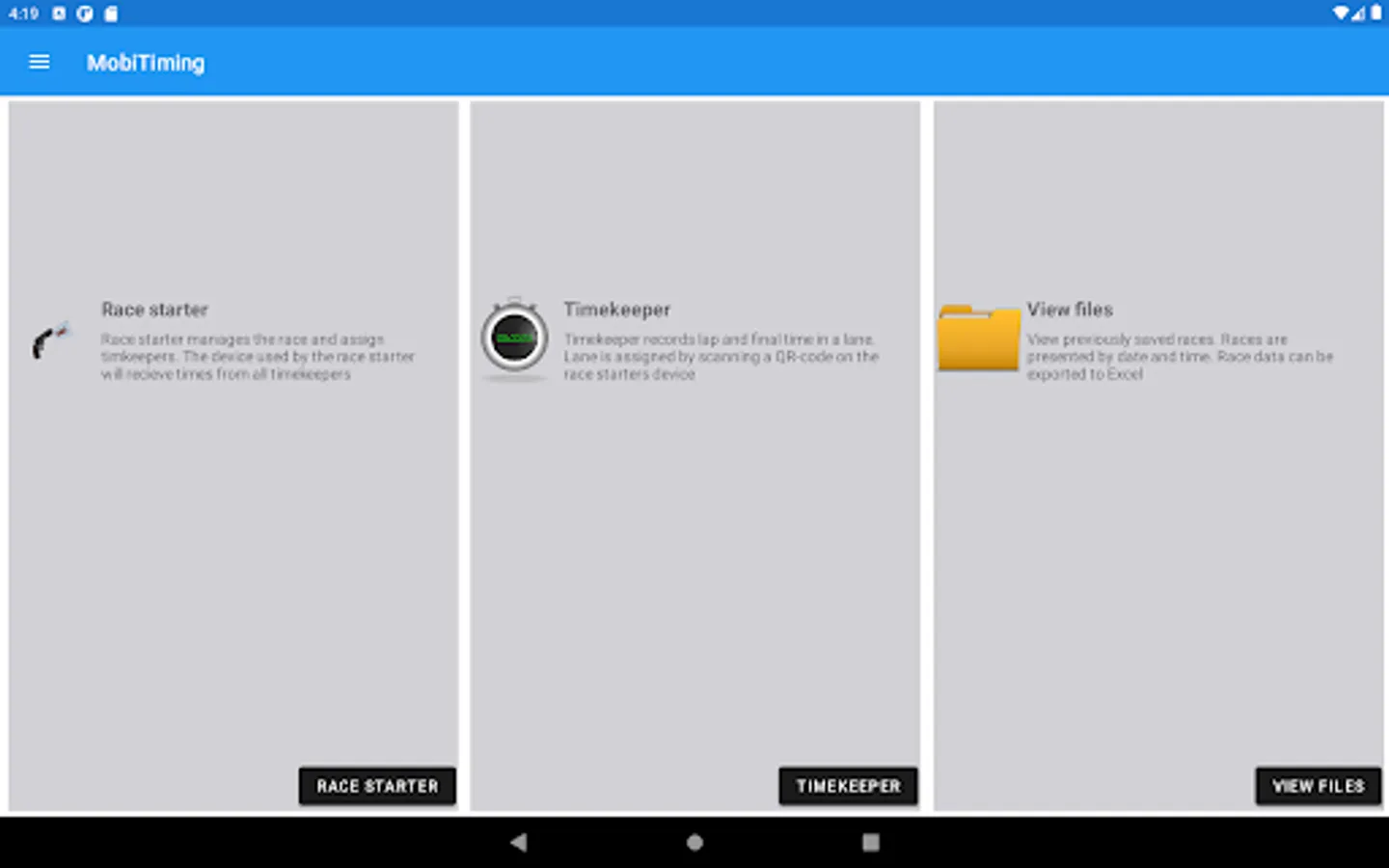 The app is primarily intended for training and informal races, being teachers, trainers or others arranging a friendly race where a digital timekeeping is wanted. Consider the app as a supplement to using multiple stopwatches for races where individual timekeepers are tracking a lane or an athlete.