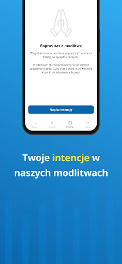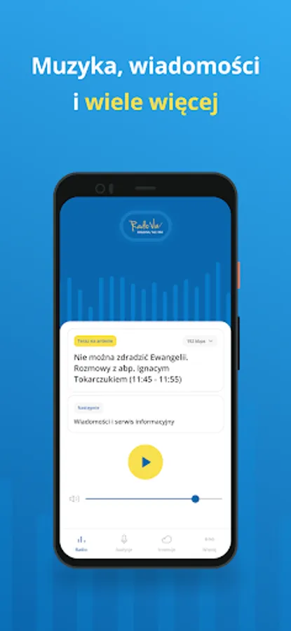 Download the official Radio VIA app. The modern mobile application allows you to listen to the radio anywhere and anytime, regardless of location. Thanks to a convenient player, you can listen to your favorite radio station on your mobile device. The application also gives the opportunity to submit an intention via a convenient form or financially support the radio through the PayU payment operator
