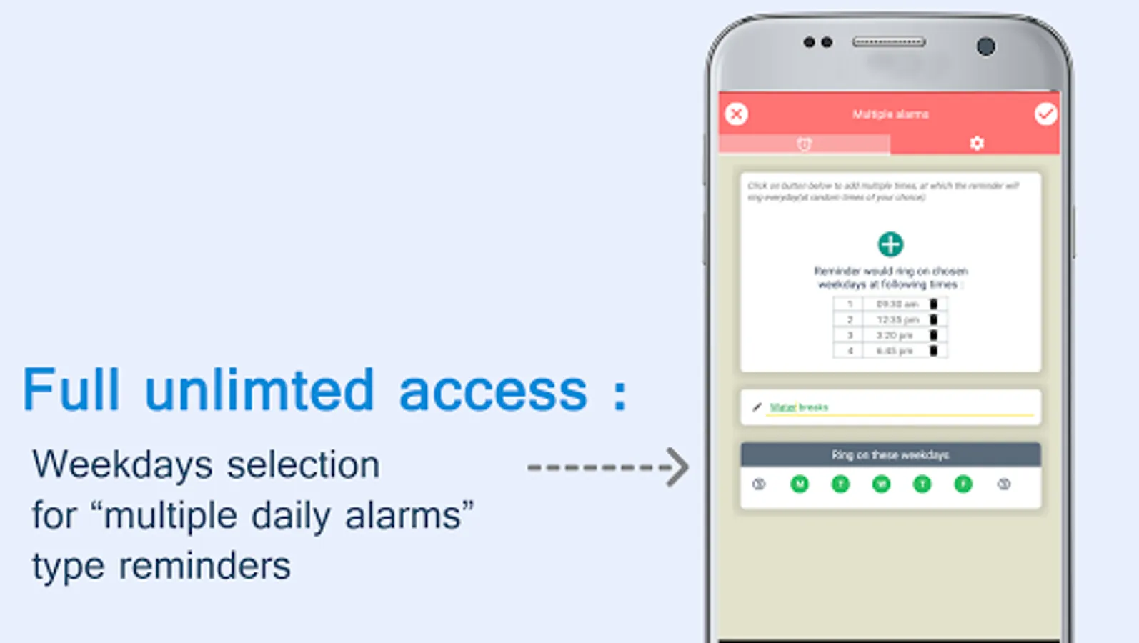 2. Weekdays selection for "Multiple daily alarms" type reminders.