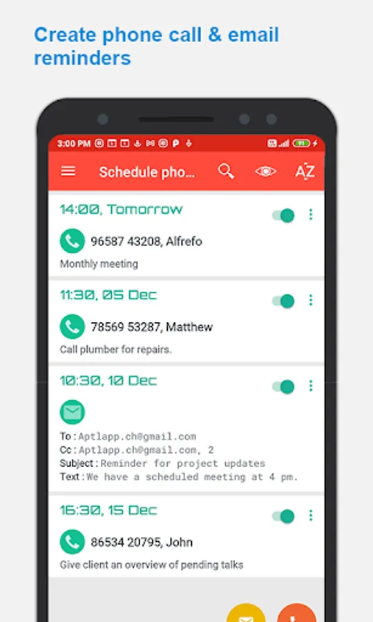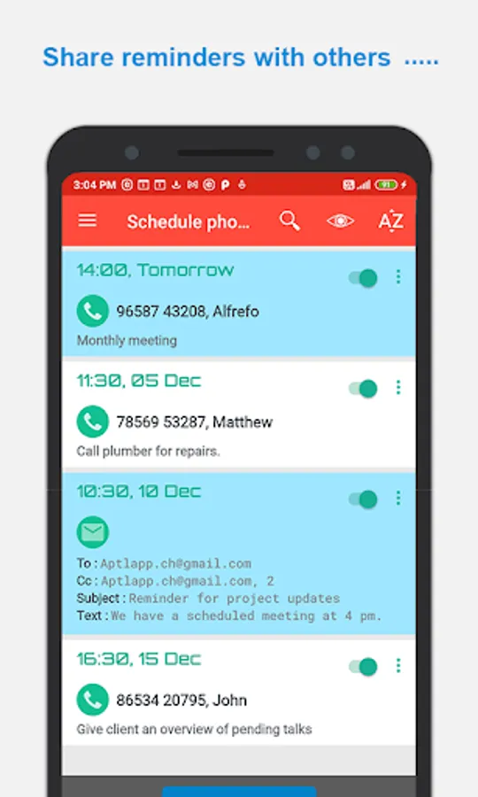 Share or delegate phone call & email reminders to your team members, sub-ordinates, seniors, family, friends etc, who can import shared reminders on their phone.