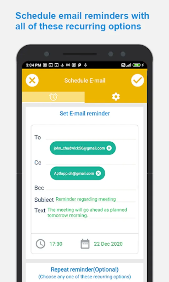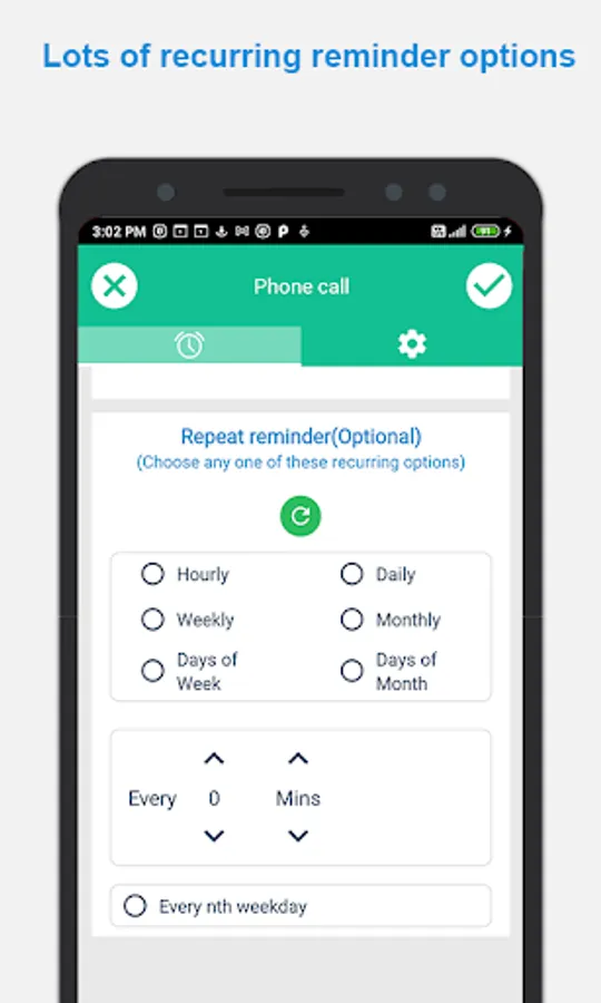 2. Reminders which repeat every "x" number of minutes/hours/days/weeks/months/years