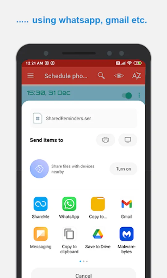 The recipient of "shared reminders" file can then import these shared reminders in his/her phone. Once imported, these shared reminders will ring at scheduled times on their phones.