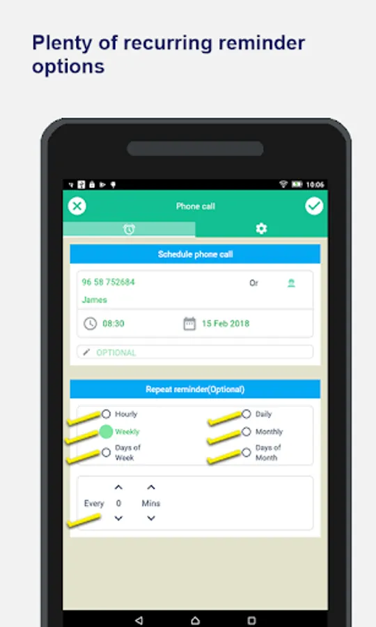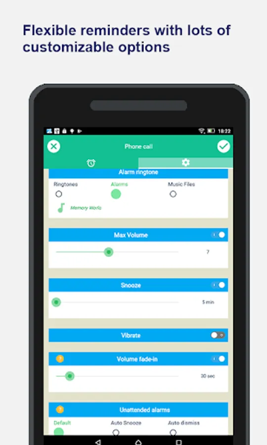 • Completely flexible reminders with a no. of customizable options: Customize each phone call reminder with options like unique ringtone, max volume, snoozing options, volume fade in, Auto-snooze etc.