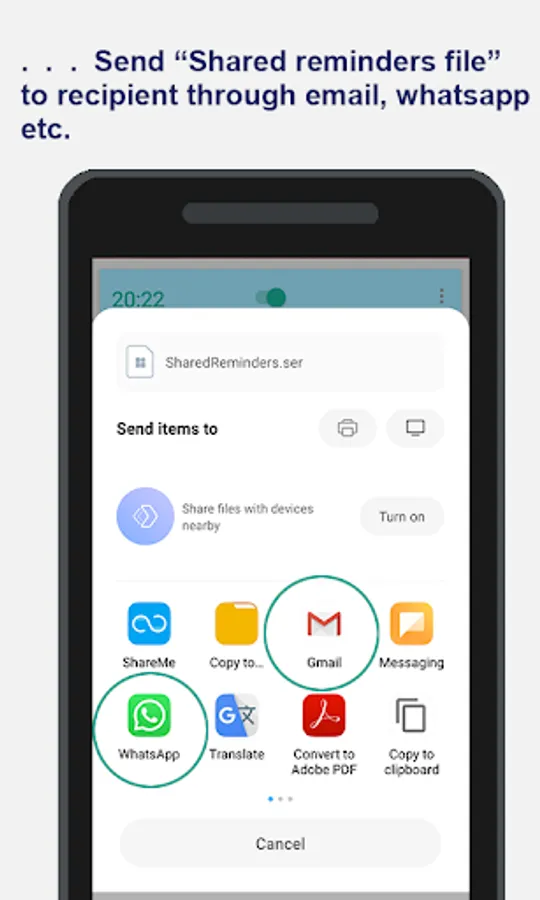 The recipient of "shared reminders" file can then import these shared reminders in his/her phone. Once imported, these shared reminders will ring at scheduled times on their phones.