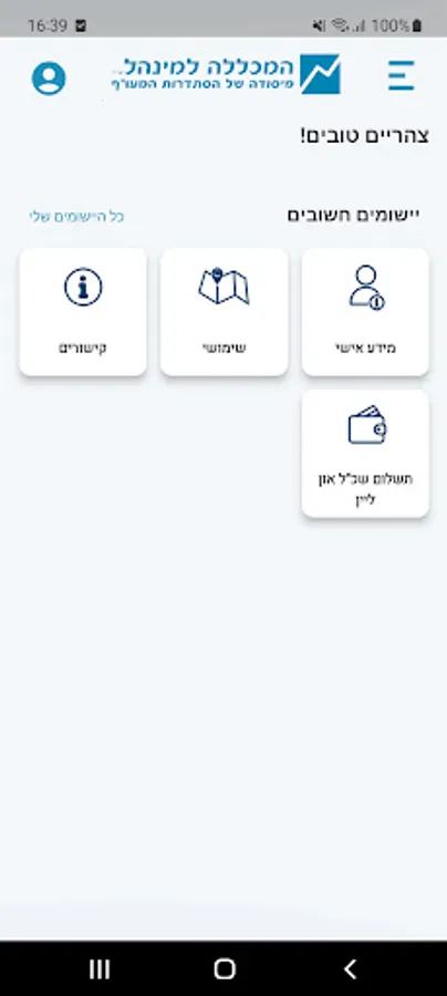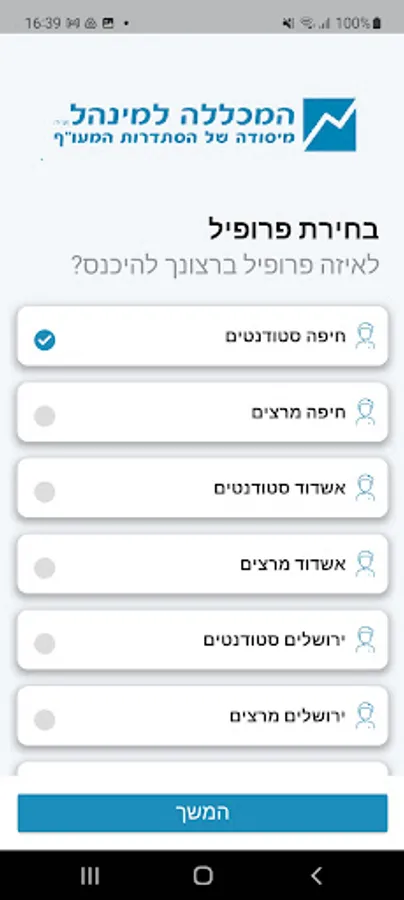 The application of the College of Administration for the branches - Haifa, Ashdod, Jerusalem and Rishon Lezion, Be'er Sheva, Petah Tikva, Ginat - for students and lecturers.