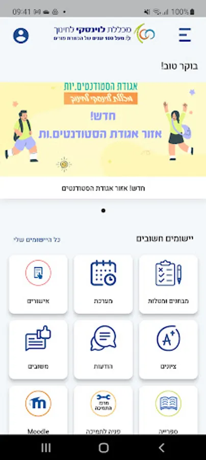 אפליקציית מידע אישי לסטודנט ומרצים מכילה מגוון שירותים מידע במכללת לוינסקי לחינוך: