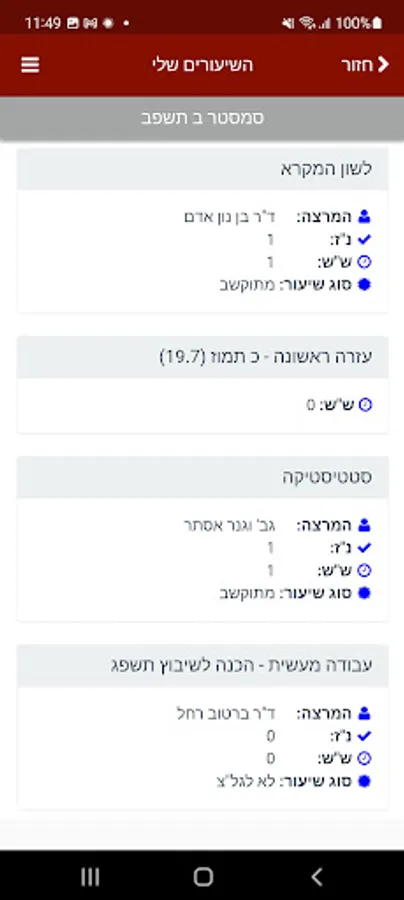 A personal information application for students and lecturers at Orot Israel College Elkana and Rehovot campuses contains a variety of services, such as: