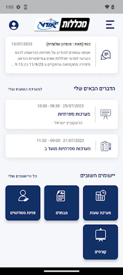 The new application of Ort Colleges, which interfaces with the newsletter, is intended for lecturers and allows entering attendance, keeping up to date with academic information such as the timetable, exam schedule, student inquiries and system announcements.