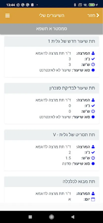 App Personal Information and lecturer contains a range of services to students and lecturers at Sapir College and includes: