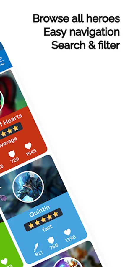 - Browse throw all the heroes of the game ( 3, 4, and 5 stars)