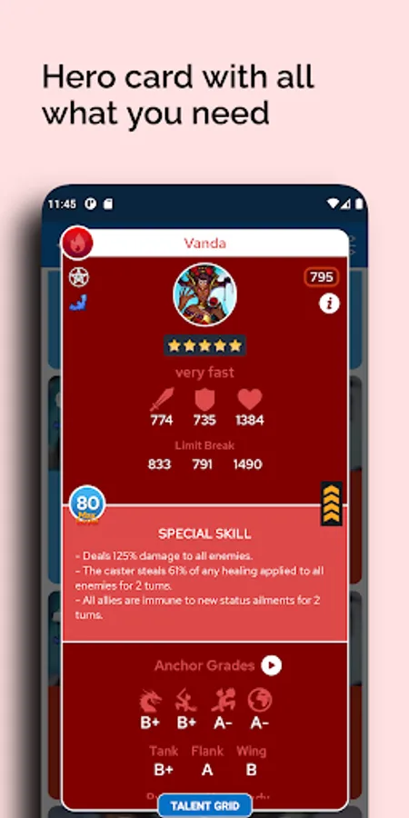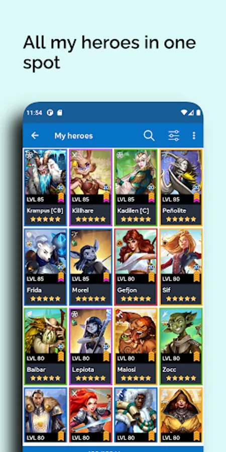 - Use a bunch of filters to quickly find the right heroes ( by element, number of stars, families, origins, classes, mana, etc…)