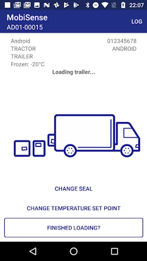 Remote sensing of position, temperature and light levels inside a refrigerated truck using mobile hardware.