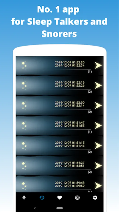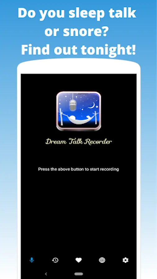 Dream Talk Recorder is an intelligent voice recorder that has been used by over 5 million people to record their sleep talks and snores at night! It automatically filters silence & records in high quality (Also available on iOS)