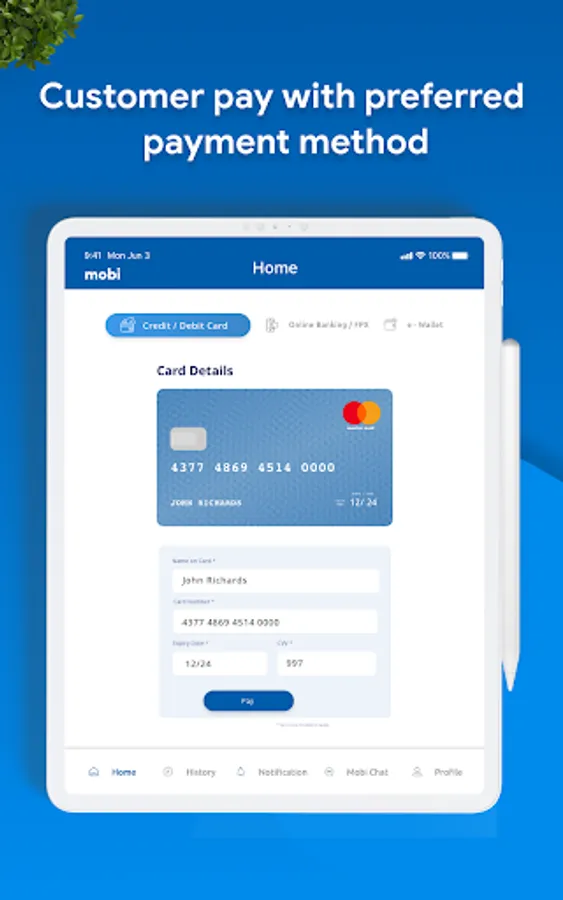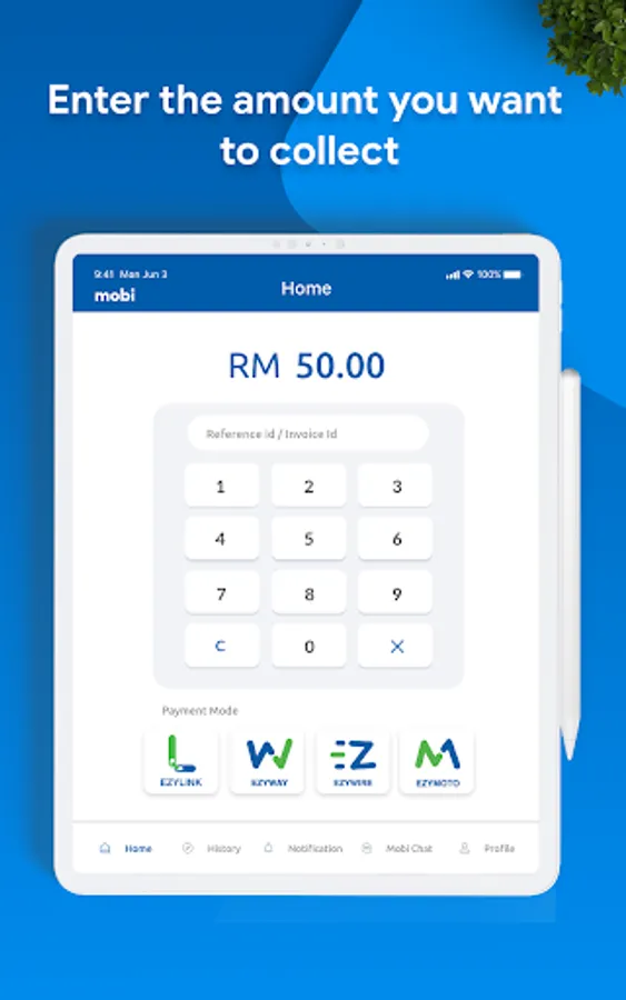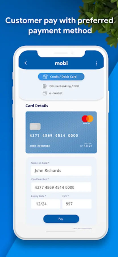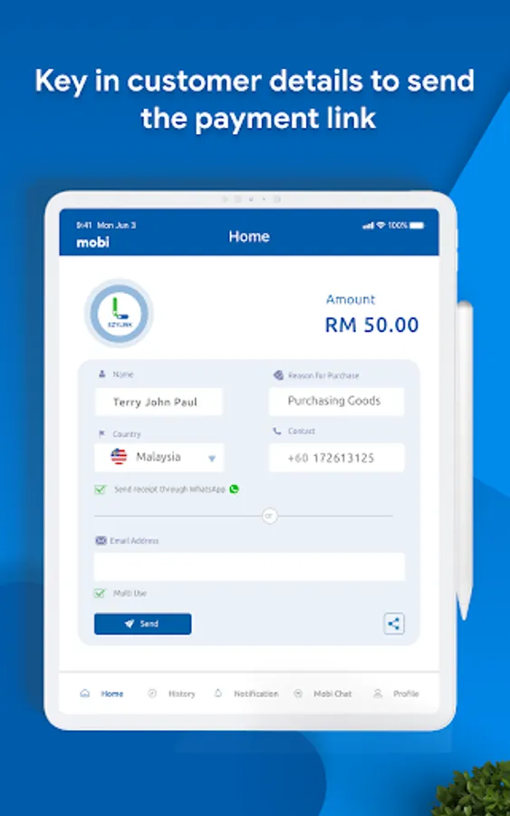 Mobi is a contact free digital payments app that enables businesses to collect payments from their customers from anywhere in the world and also issue an eReceipt.