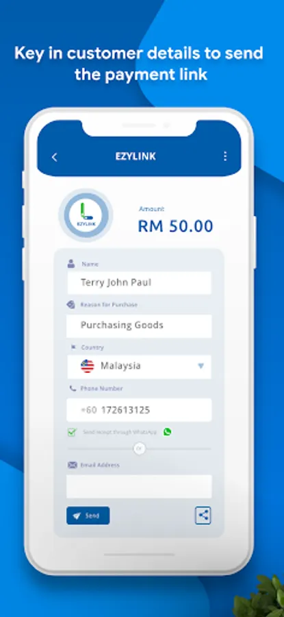 The App has multiple payment solutions for all kinds of Businesses including one of the most popular payment methods, EZYLINK - Link Payments using WhatsApp / SMS / Email.