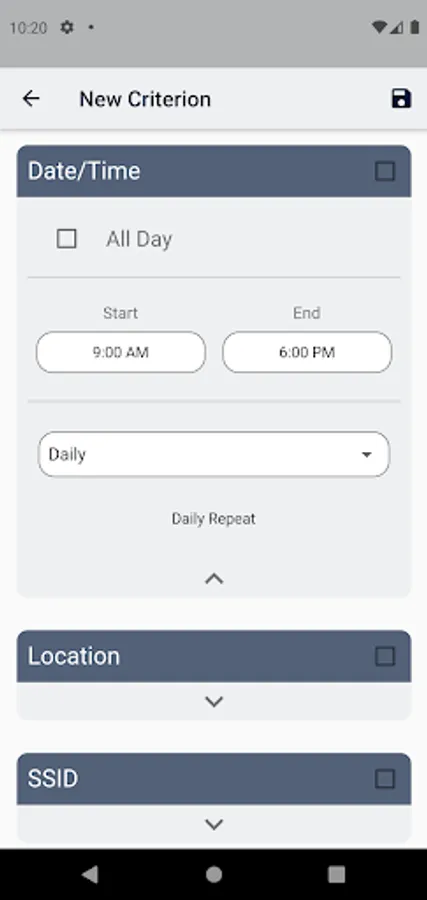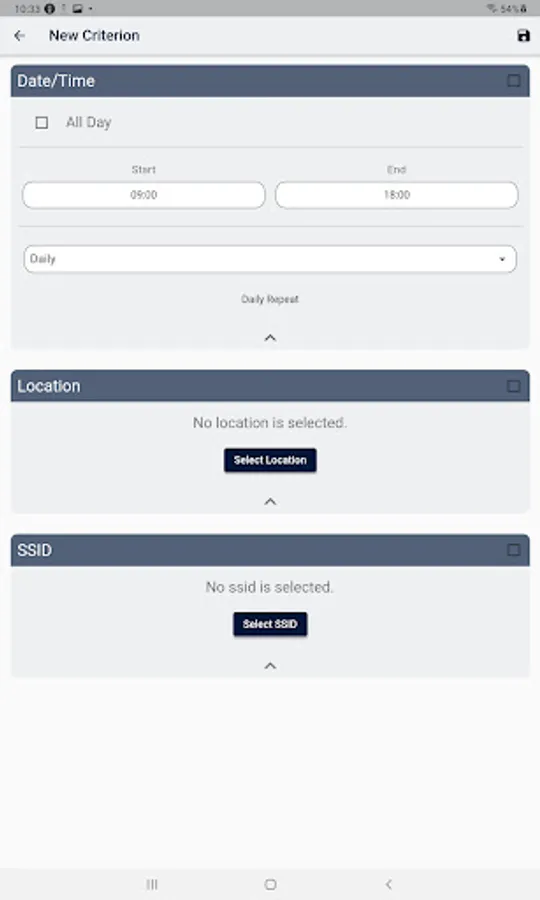 - Manage some restriction items (Criterion, Wi-Fi, Location)